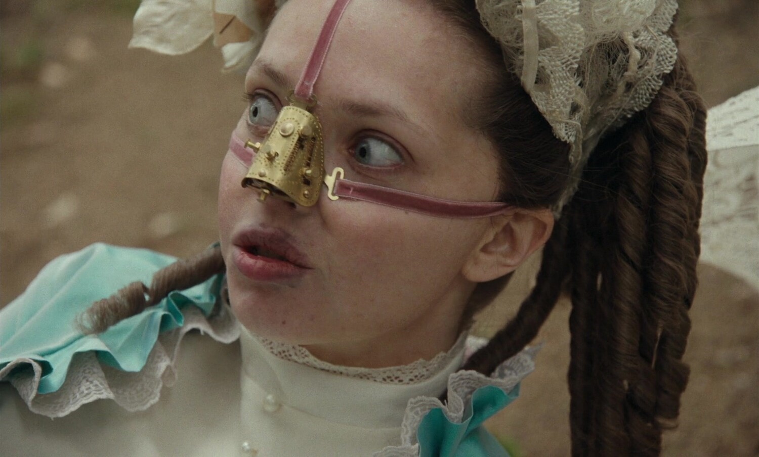 Гротескные, во многом словно сошедшие с гравюр «Капричос» Гойи, персонажи превращаются в слишком прекрасных во время бала, чтобы задумываться об истинном назначении этой жестокой картины ярмарки невест. Так у режиссера возникает интересный разрыв – в фильме о торжестве красоты, кривляясь, отовсюду выглядывают ее противоположности, такие, как сводная сестра прекрасной героини Несс. В целом это работает, потому что Блихфельдт не стремится выстроить особые, трансцендентные метафоры, которые превосходят понимание широкой публики, и не ищет особого изящества в ленточных червях внутри протагонистки и в жестокости.