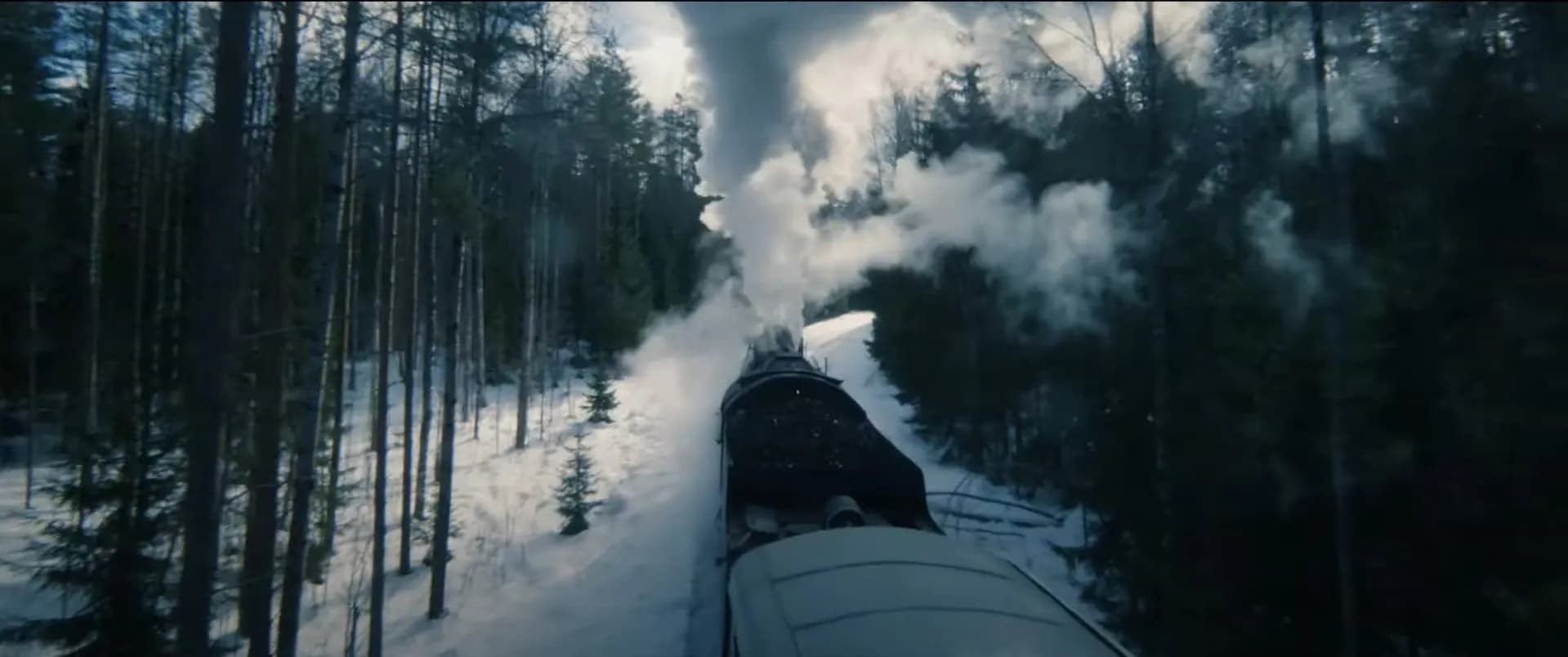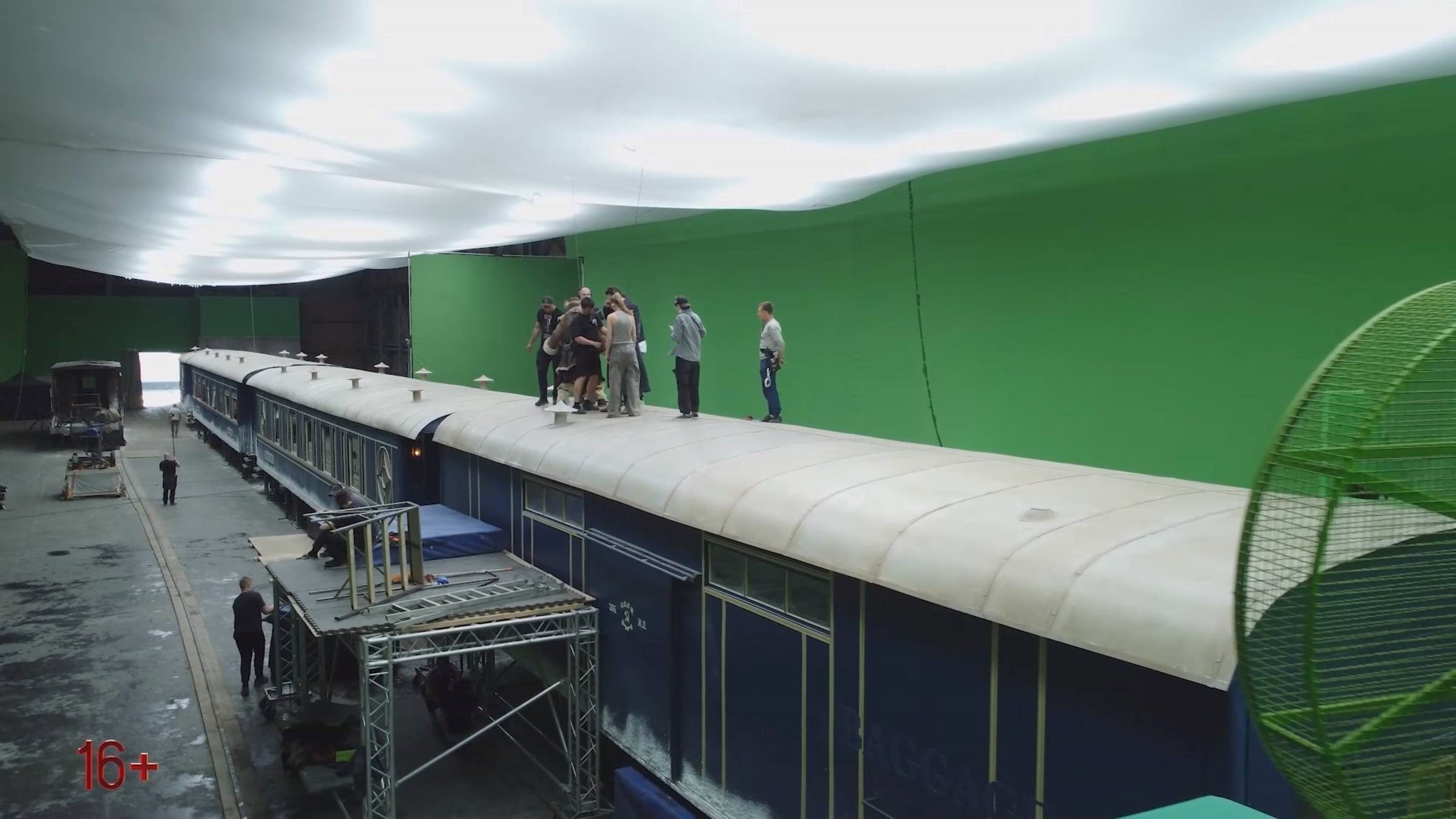 Для создания эффекта реального перемещения за окнами поезда в павильоне были установлены крупные LED-экраны, один из которых, крупнейший в Европе, имел размер порядка десятков метров. Виртуальные декорации были сопряжены со светом, чувствительным к изображениям. Благодаря такой реконструкции для актеров и съемочной группы возникало реальное ощущение движения по необъятному коридору в снежном лесу.