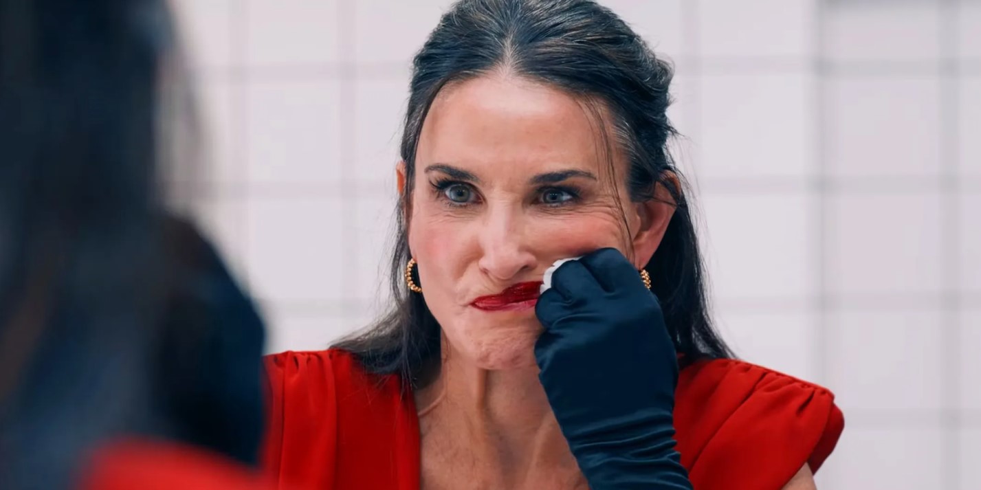 Наконец, сравнительно свежий пример своего рода подвига, который совершила актриса (и который поражает даже в сравнении со смелостью Николь Кидман), – игра Деми Мур. «Субстанция» /2024/ не просто помогла реанимировать её карьеру, принеся первый «Золотой глобус» и номинацию на премию «Оскар». На фоне того, что происходит в картине Натали Фаржа, невольно поблекли прежние достижения знаменитости – например, в «Разоблачении» /1994/ (кстати, ещё один талантливый эротический триллер) или в комедии «Стриптиз» /1996/. Деми не побоялась не только предстать на кинополотне, как говорится, в костюме Евы. Особой смелости от женщины, заслуженно считавшейся пределом мечтаний миллионов мужчин, потребовало преображение в отвратительное существо, физически деградирующее буквально на наших глазах. Не нужно быть психоаналитиком, чтобы понять, какой мучительной борьбы с комплексами и внутренними страхами (в первую очередь – с боязнью стремительно постареть) стоила роль. «Дело не в наготе, а в уязвимости», – философски заметила Мур.