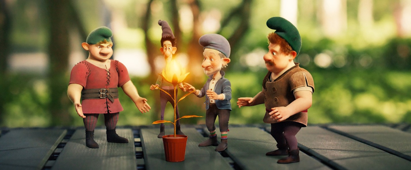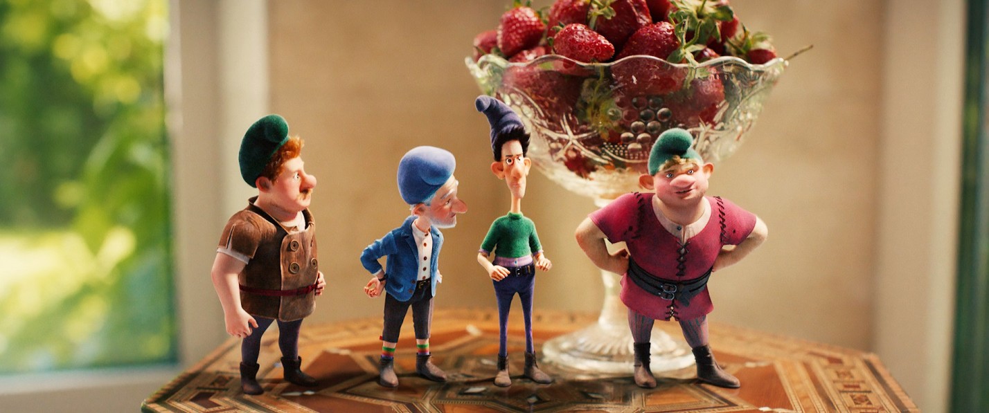 Конечно, Александр Бабаев и Василий Ровенский (он отвечал за анимацию и участвовал в сочинении сценария) придерживались более традиционной трактовки – опирались на привычные сказочно-мифологические представления. Не сказал бы, что Умник, Крепыш, Зевака и Пекарь сильно напоминают своих собратьев из классического мультфильма «Белоснежка и семь гномов» /1937/, недавний ремейк которого, реализованный сегодняшними преемниками Уолта Диснея средствами игрового кинематографа, спровоцировал неоднозначную реакцию. Но вот, скажем, персонажи CGI-дилогии про Гномео и Джульетту всплывают на сеансе в памяти неоднократно… Жаль, что авторы российского фильма, теперь доступного и для просмотра онлайн, не постарались вовлечь этих героев в действие более активно – не сделали прямыми участниками драматургических конфликтов, не заставили непосредственно влиять на развитие сюжета. Это позволило бы ярче раскрыть их характеры, придав каждому запоминающиеся черты – в дополнение к колоритной внешности и голосам, принадлежащим известным артистам.